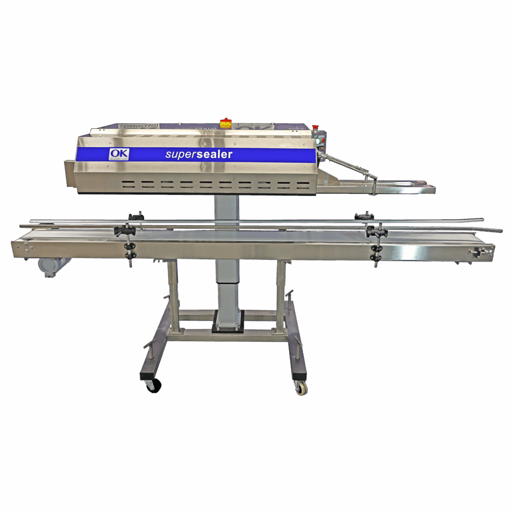 Its 316 stainless steel finish, heavy-duty construction, motorized and increased heat capacity enables sustainable high-speed output for thicker bags. With it’s 8 heaters, it will seal material up to 40 mils or 1000 microns and run a speed up to 120 fpm. The sealer provides consistent worry-free long-term reliability for a wide range of tough sealing products.